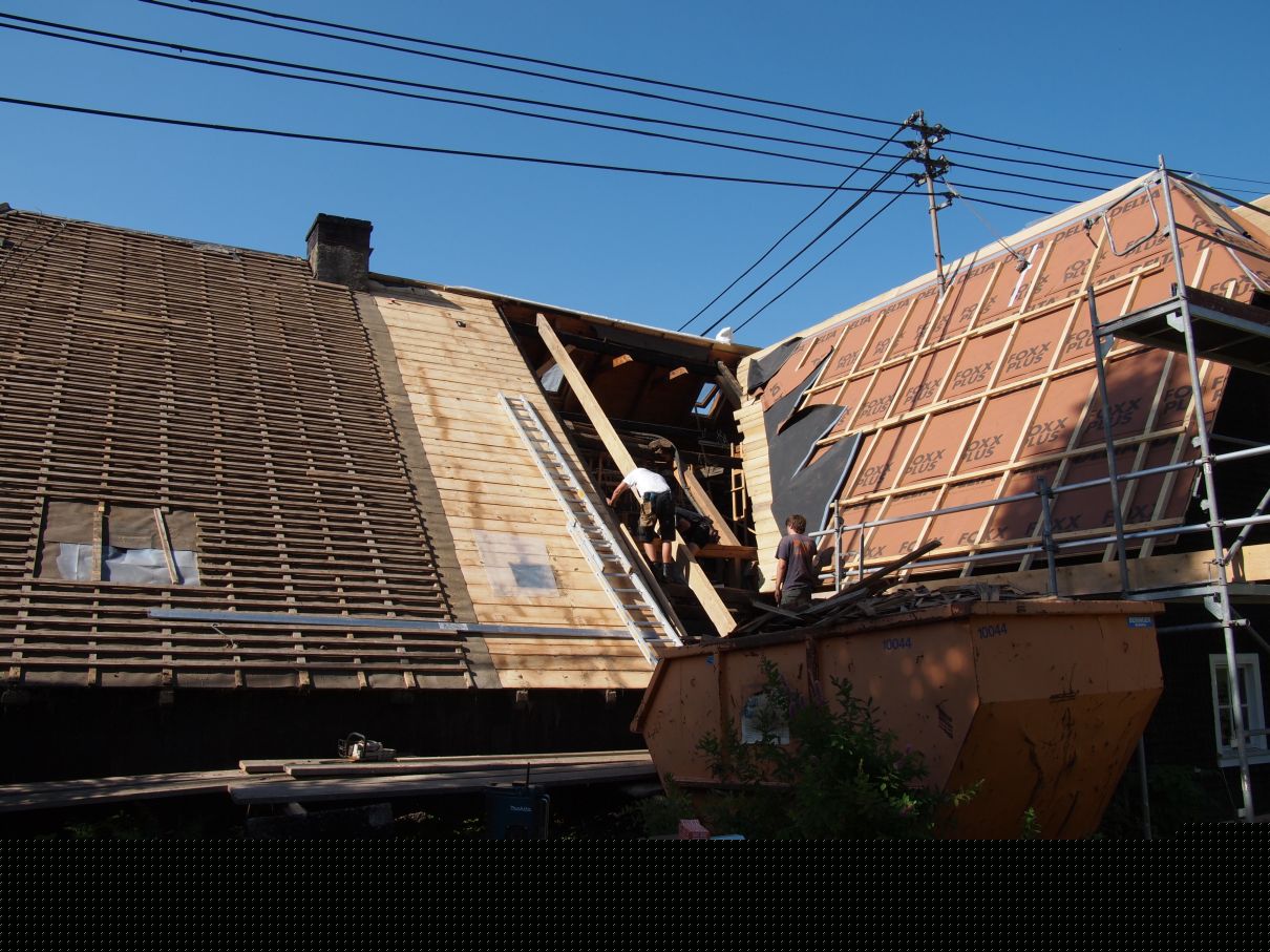 - schlussendlich neue Dacheindeckung (Asbest Schindeln)